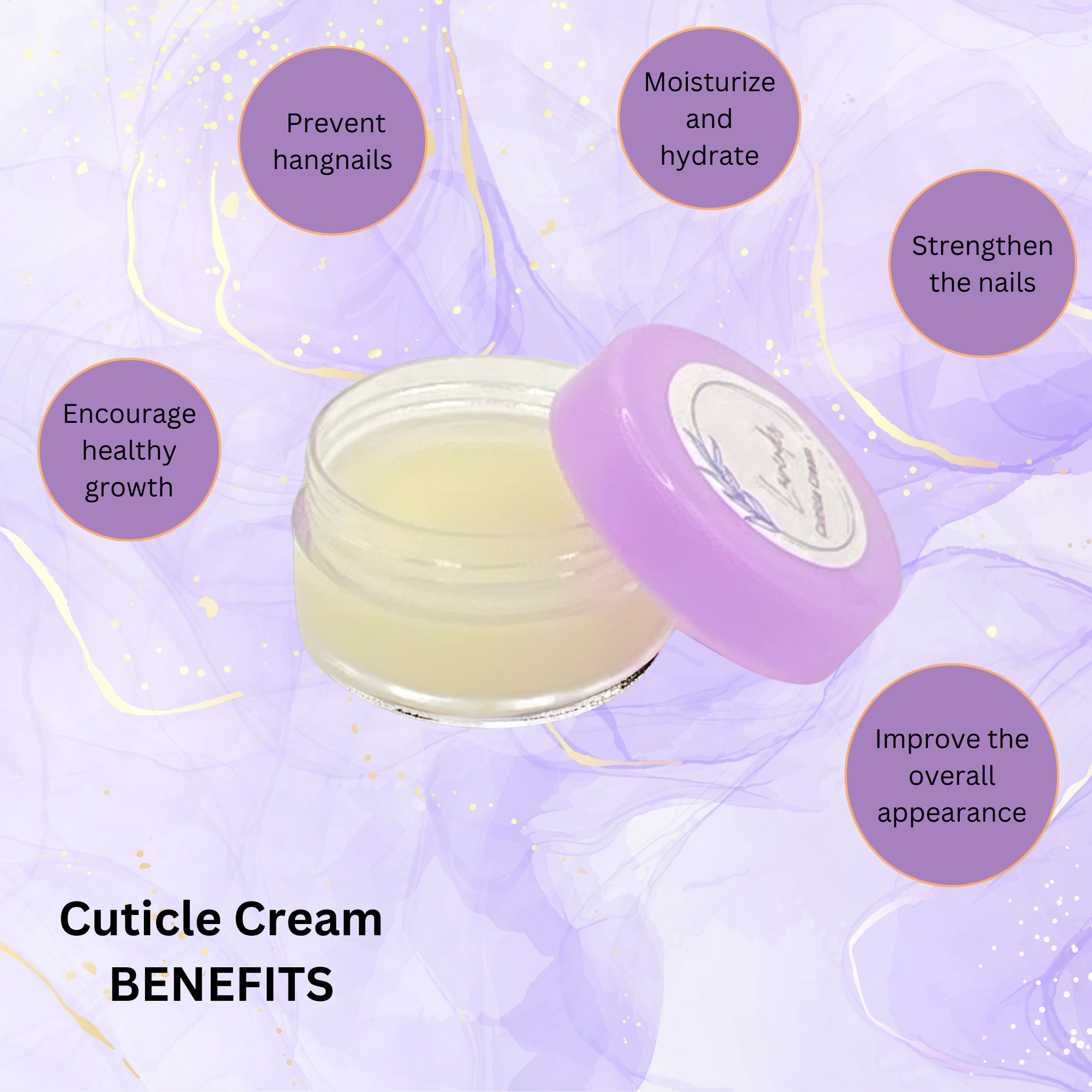 Say goodbye to dry, unruly cuticles, and hello to a world of nail nirvana! Our Mini Cuticle Cream is here to rescue your fingertips with its powerful blend of nourishing ingredients and pocket-sized perfection. Versatile Charm, as it's not just for cuticles – this mini marvel doubles as a nail protector. Pamper your nails with a layer of defense against the daily grind. Indulge your senses with a delightful fragrance that transforms your nail care routine into a mini spa moment. Self-care will be a treat for your senses, with the scent of amazing Lavender!