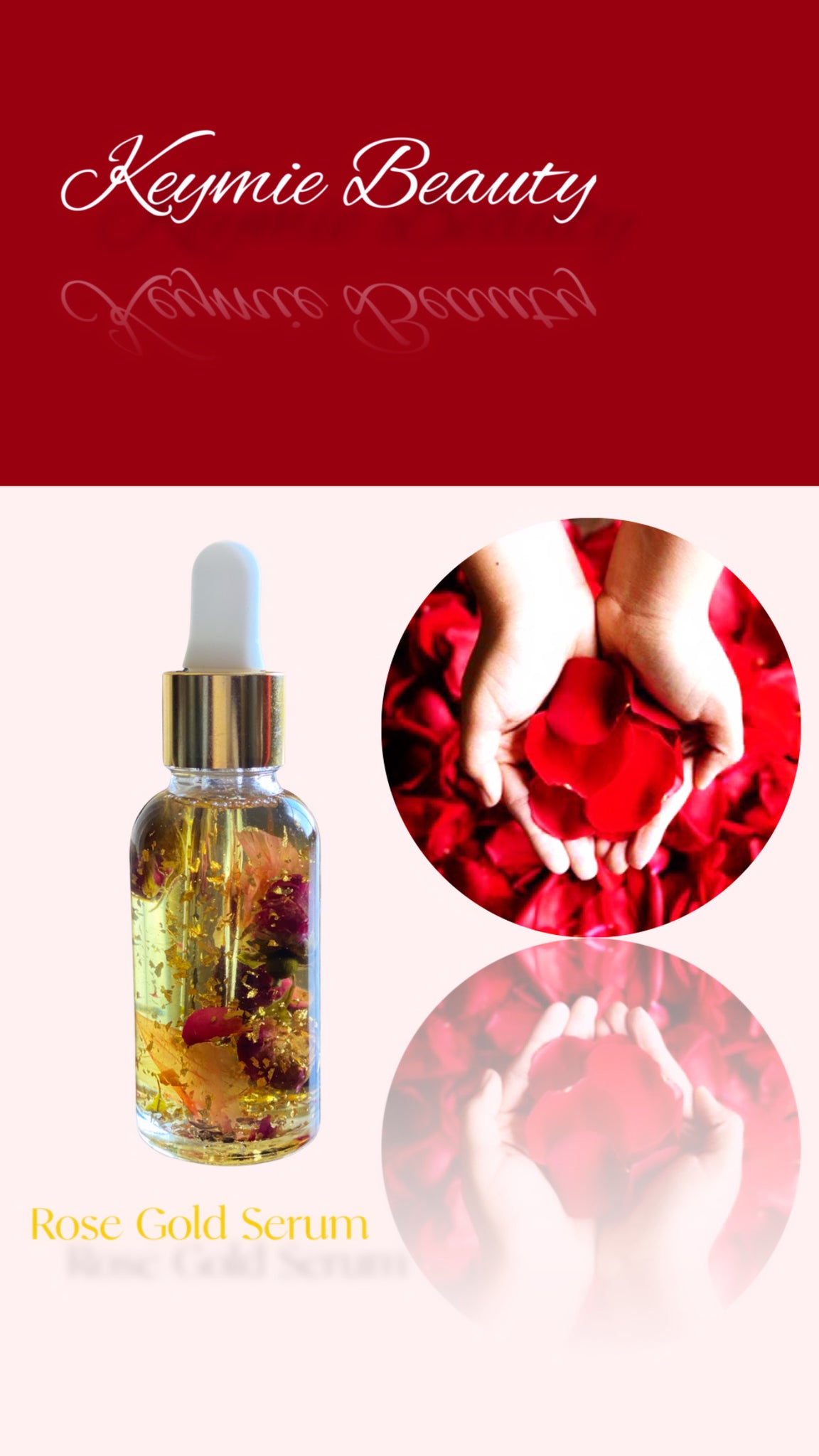 Ingredients: Vitamin E, Sweet Almond oil, 24K Gold particles, essential oil, Rose extract, Rosehip oil, Tea tree oil, Jojoba oil, Grapeseed oil, Vitamin C, Rose petals.