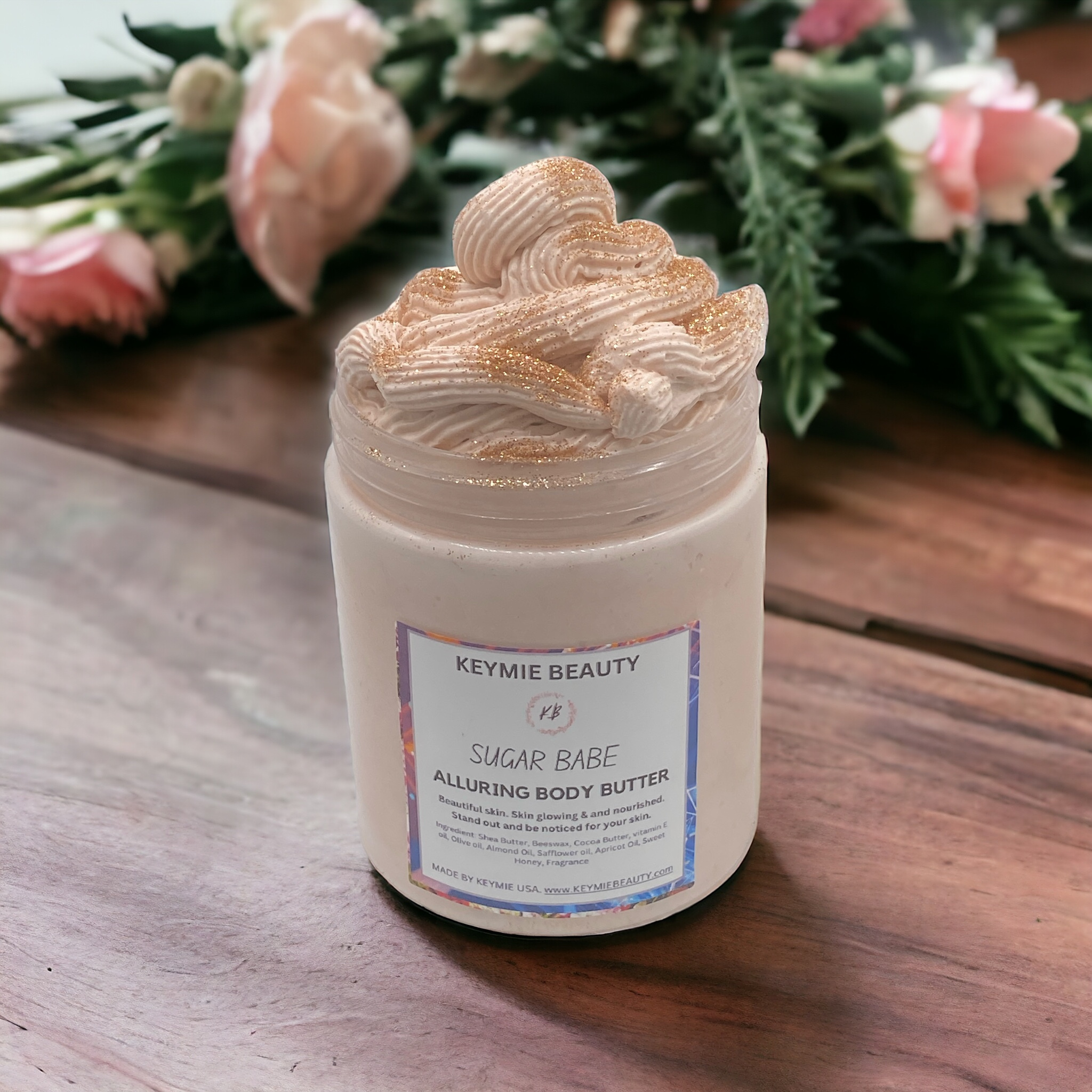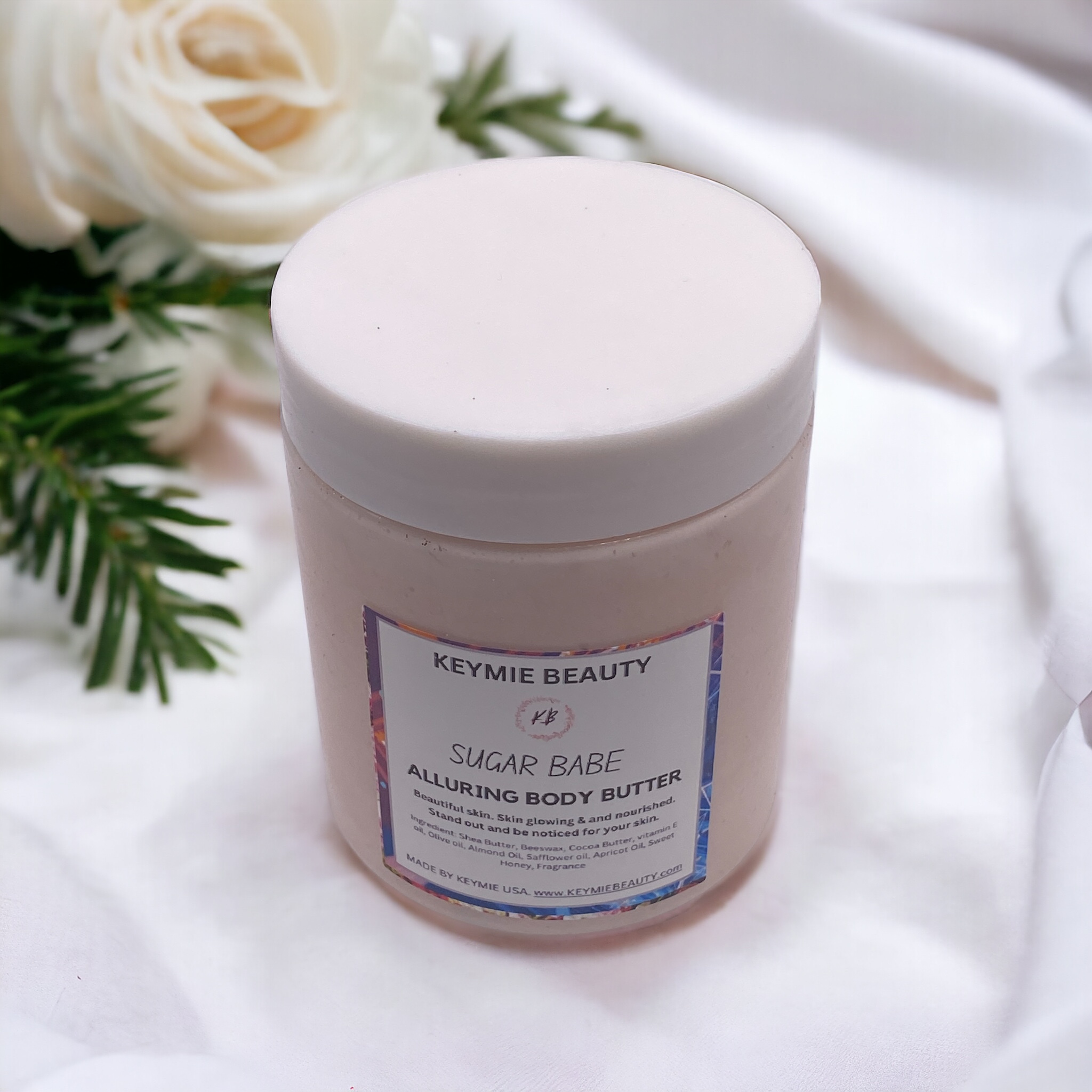 Indulge in an exquisite, all-natural body butter crafted from the lavish richness of Cocoa Butters and Shea Butters, enriched with Apricot and Olive Oils. This luxurious blend deeply nourishes your skin, leaving it irresistibly soft and visibly moisturized. Elevate your natural radiance with 24-hour moisture, embracing the allure of supremely sexy skin. Experience the astonishing blend of airy, aromatic, and balmy notes—a beautiful, bubbly sensational scent.