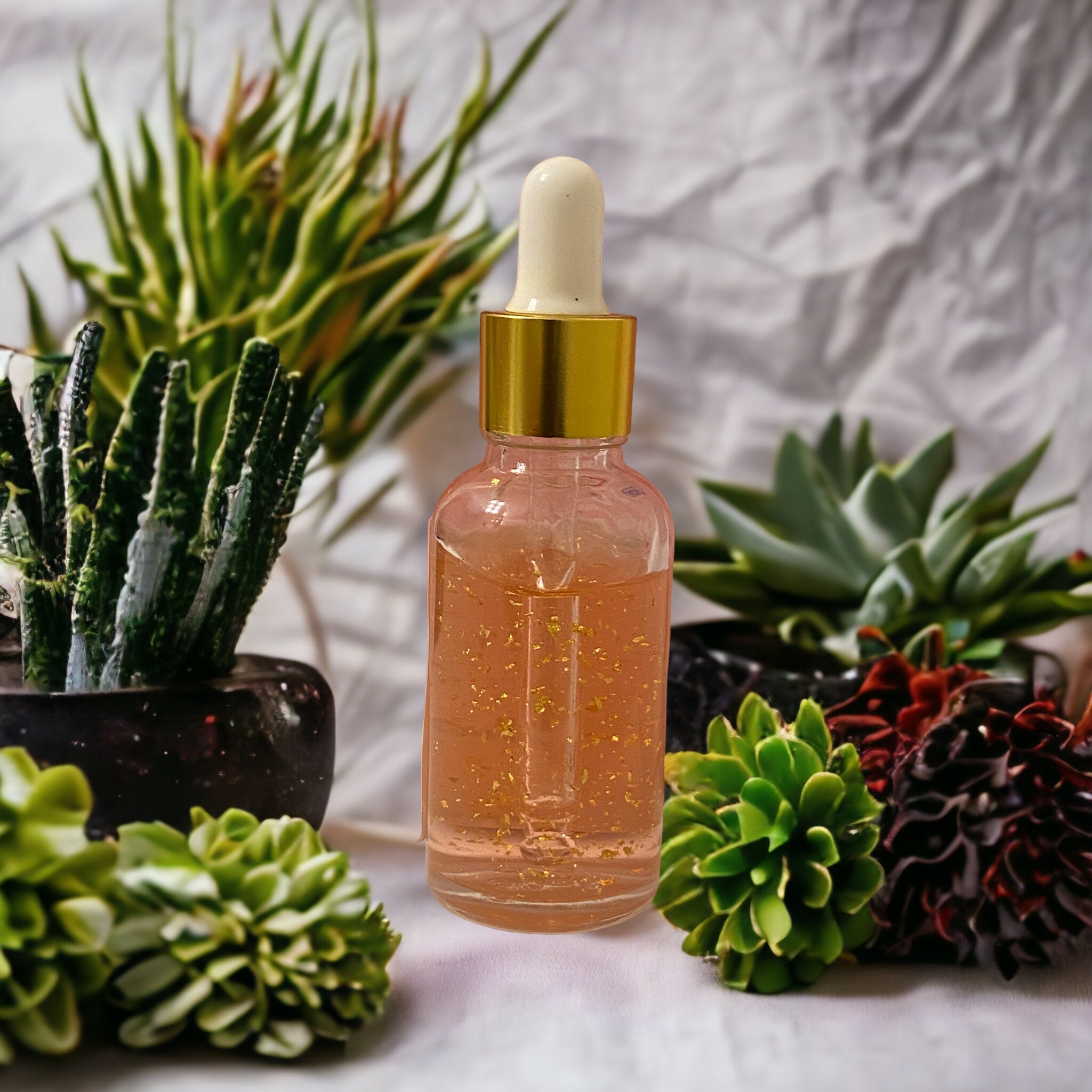Ingredients: Vitamin C, Hyaluronic acid, Aloe Vera, Glycerin, Rose extract, 24K Gold particles, Vitamin E, Sweet Almond oil, Rosehip oil, Tea tree oil, Jojoba oil, Rose petals.